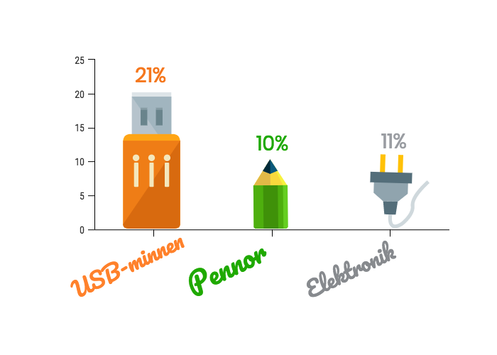 I BPMA Industry Research 2011 frågade man människor i Storbritannien vad de helst ville ha för profilprodukter. Pennor landade på plats tre, tätt efter elektronik. Först kom USB-minnen (som möjligtvis förlorat i popularitet sedan dess). Något som är anmärkningsvärt är hur billig i inköp pennan är i jämförelse med dessa två toppkonkurrenter. Pennan kniper första plats på listan över vad som ges bort mest. 91% av företag som köpt in profilprodukter har bland annat köpt pennor.
